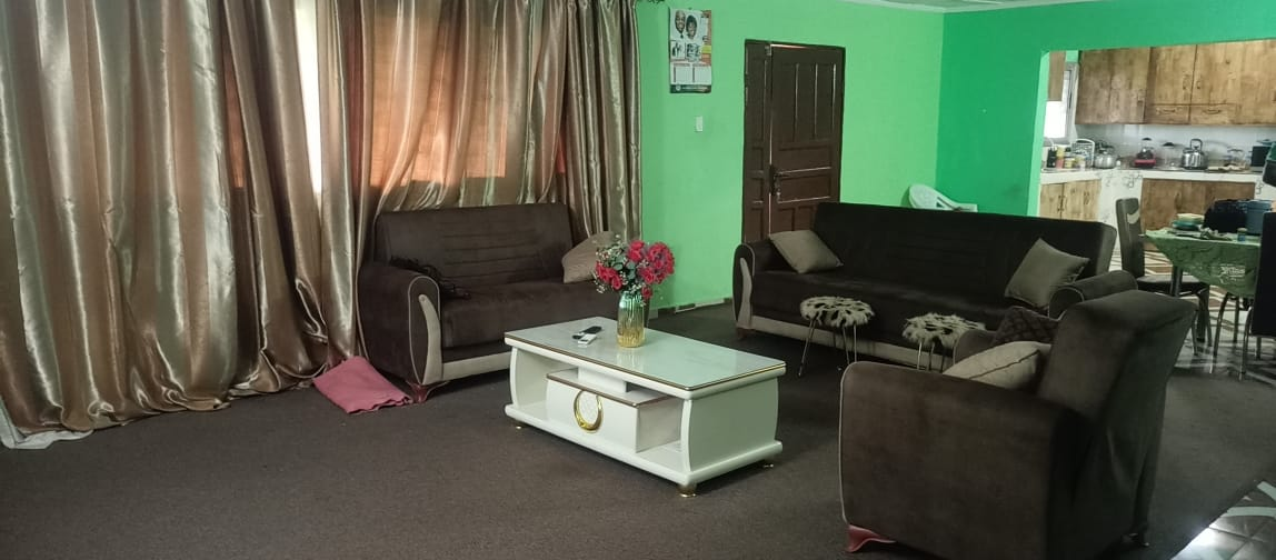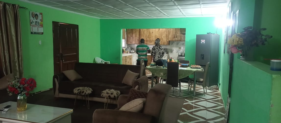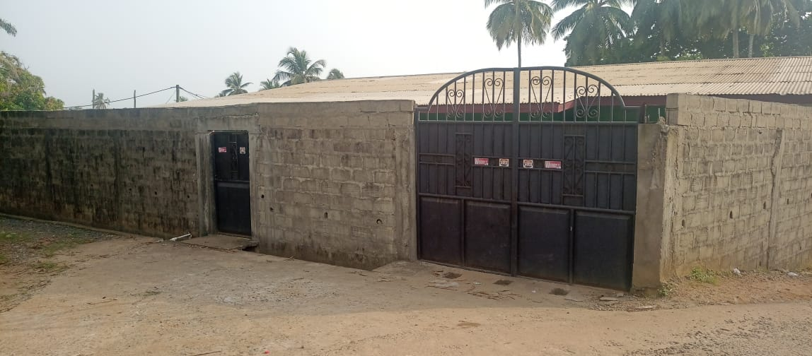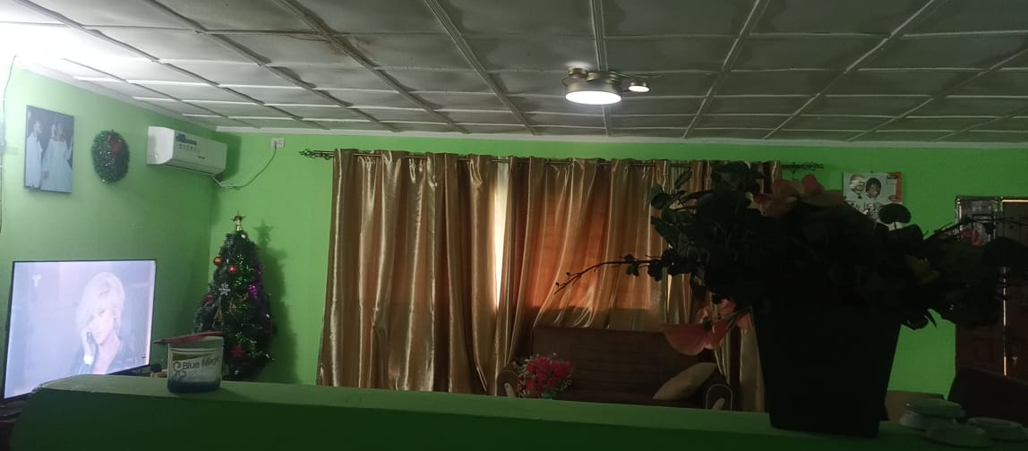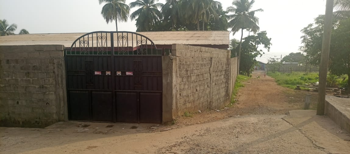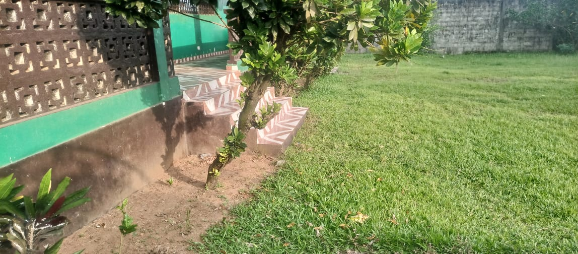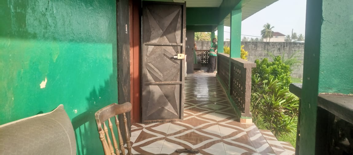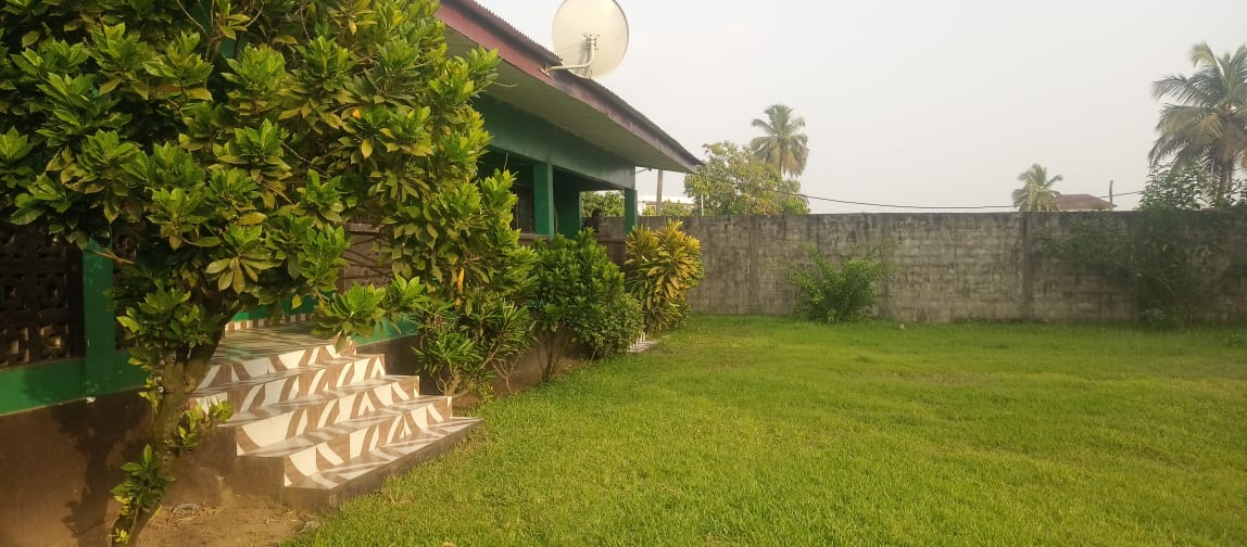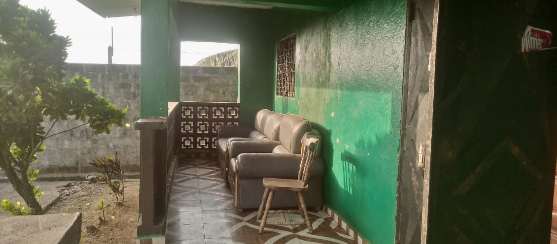 The entire gated compound secured by concrete fence is yours for rent.  It has 4 bedrooms, 3 bathrooms, a sizable living room, dining room, kitchen as well as front & back porches, LEC, and running water.