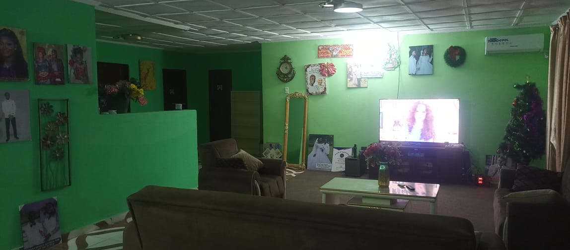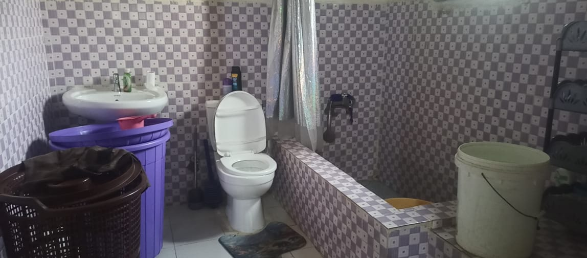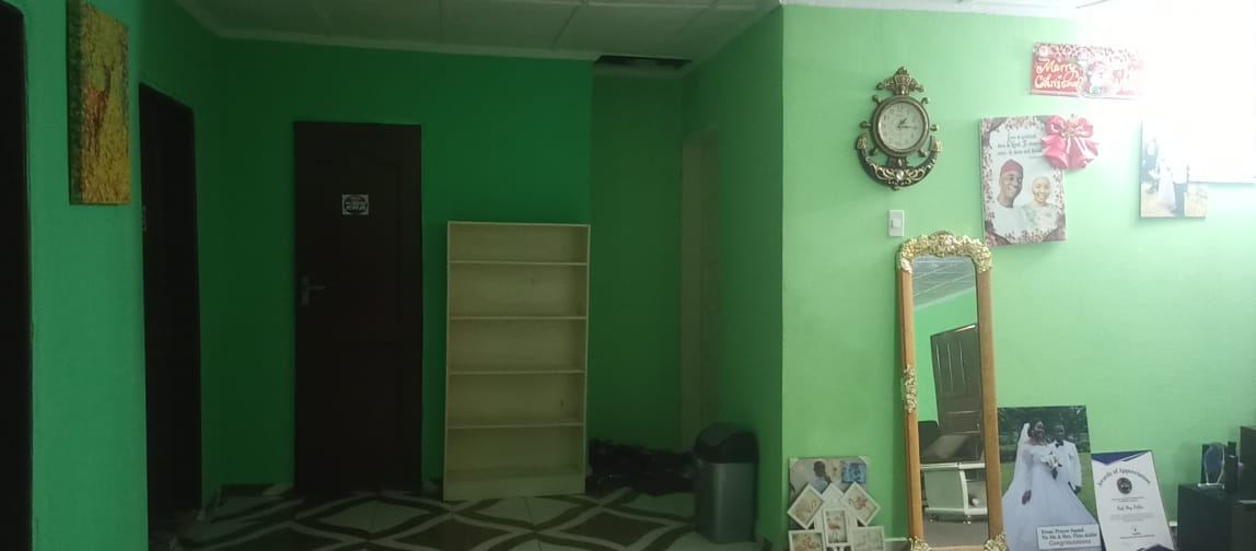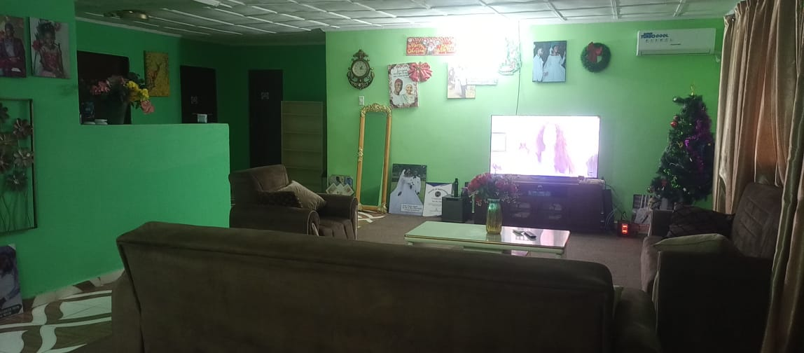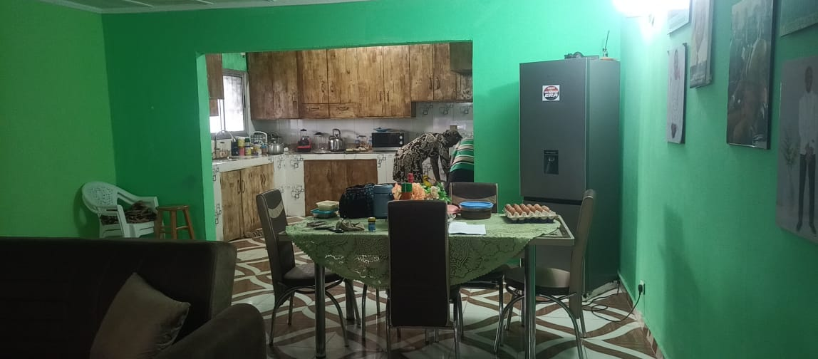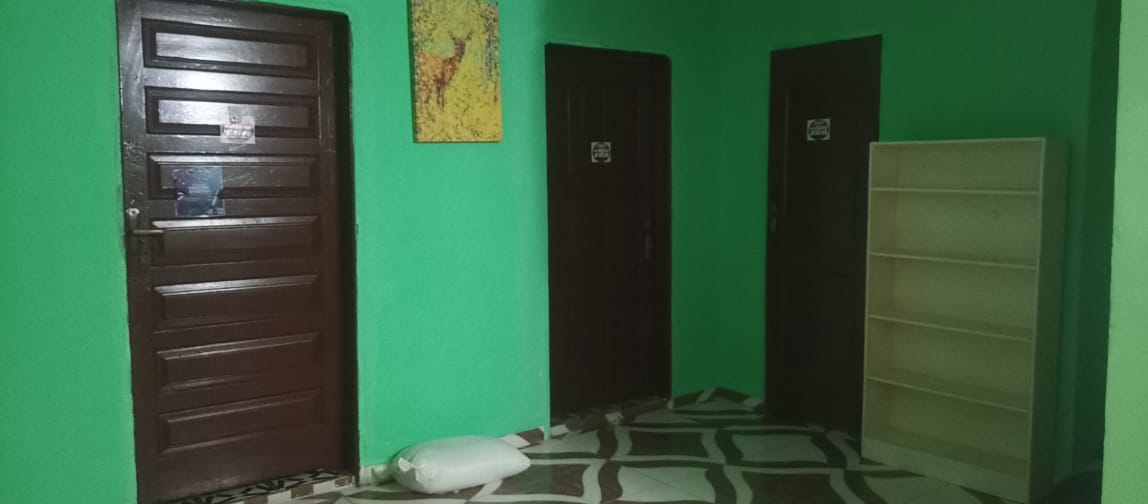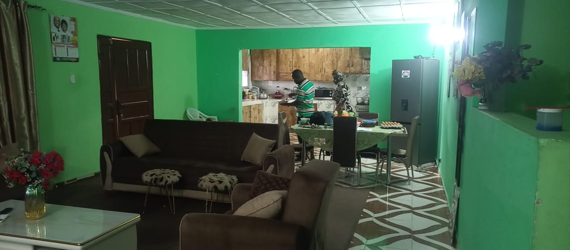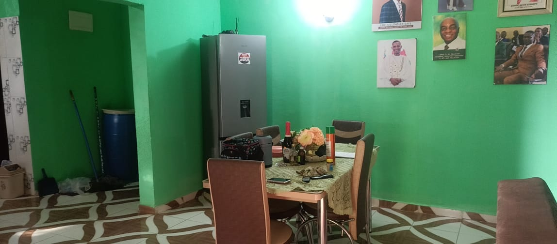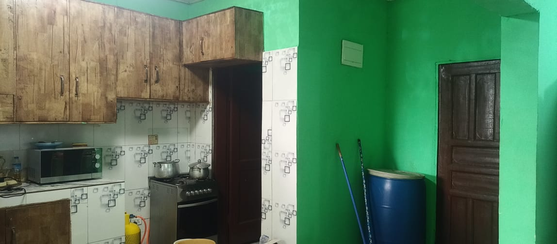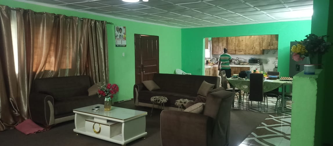 The entire gated compound secured by concrete fence is yours for rent.  It has 4 bedrooms, 3 bathrooms, a sizable living room, dining room, kitchen as well as front & back porches, LEC, and running water.