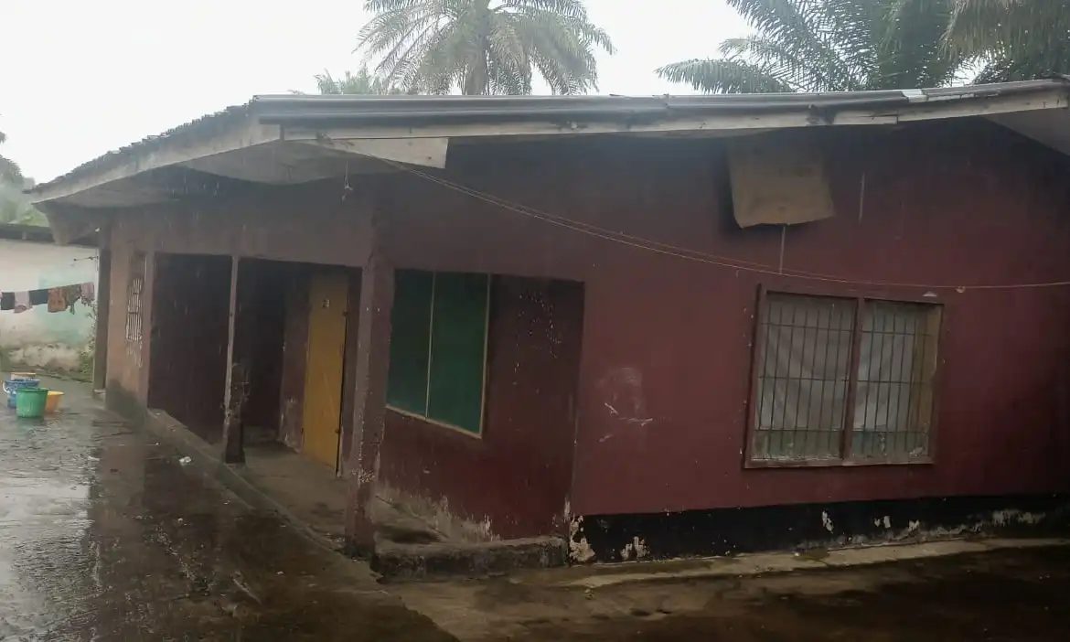 A huge beautiful unfinished modern single-family house nestled in the Broom Camp community in Brewerville.  It has 3 bedrooms, 2 baths, spacious living and dining rooms with a modern layout kitchen.  The front and back porches provide a wonderful view of the neighborhood. The compound has its own well.
